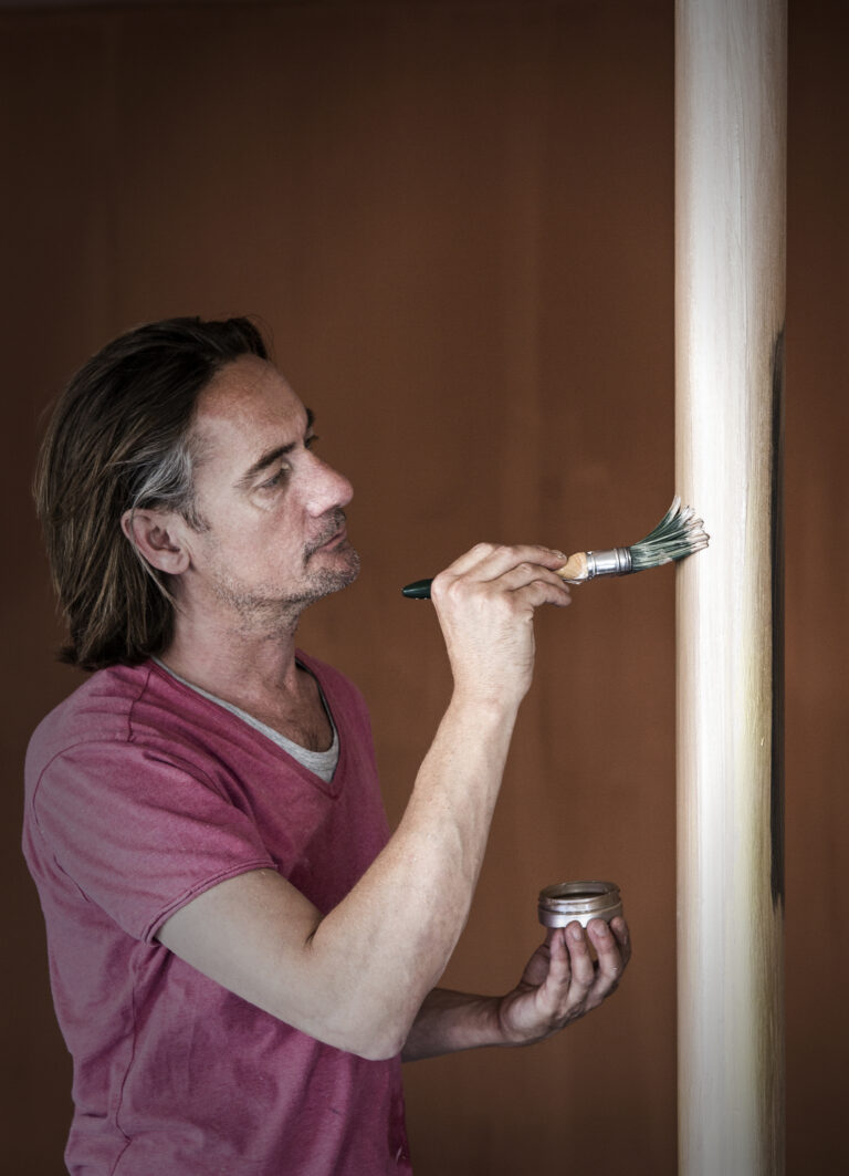 Door de kalkverf van Carte Colori met een zogenaamde ‘Japanse spatel’ – die ook wordt gebruikt door Japanse koks aan de Teppan Yaki ‘plaat’ – uit te smeren en na drogen met een speciale bijenwas in te wrijven, krijgt de wand de wolkerige nuances en luxe uitstraling van het Venetiaanse stucwerk. Er ontstaat een prachtig klassiek ‘marmer’ effect.